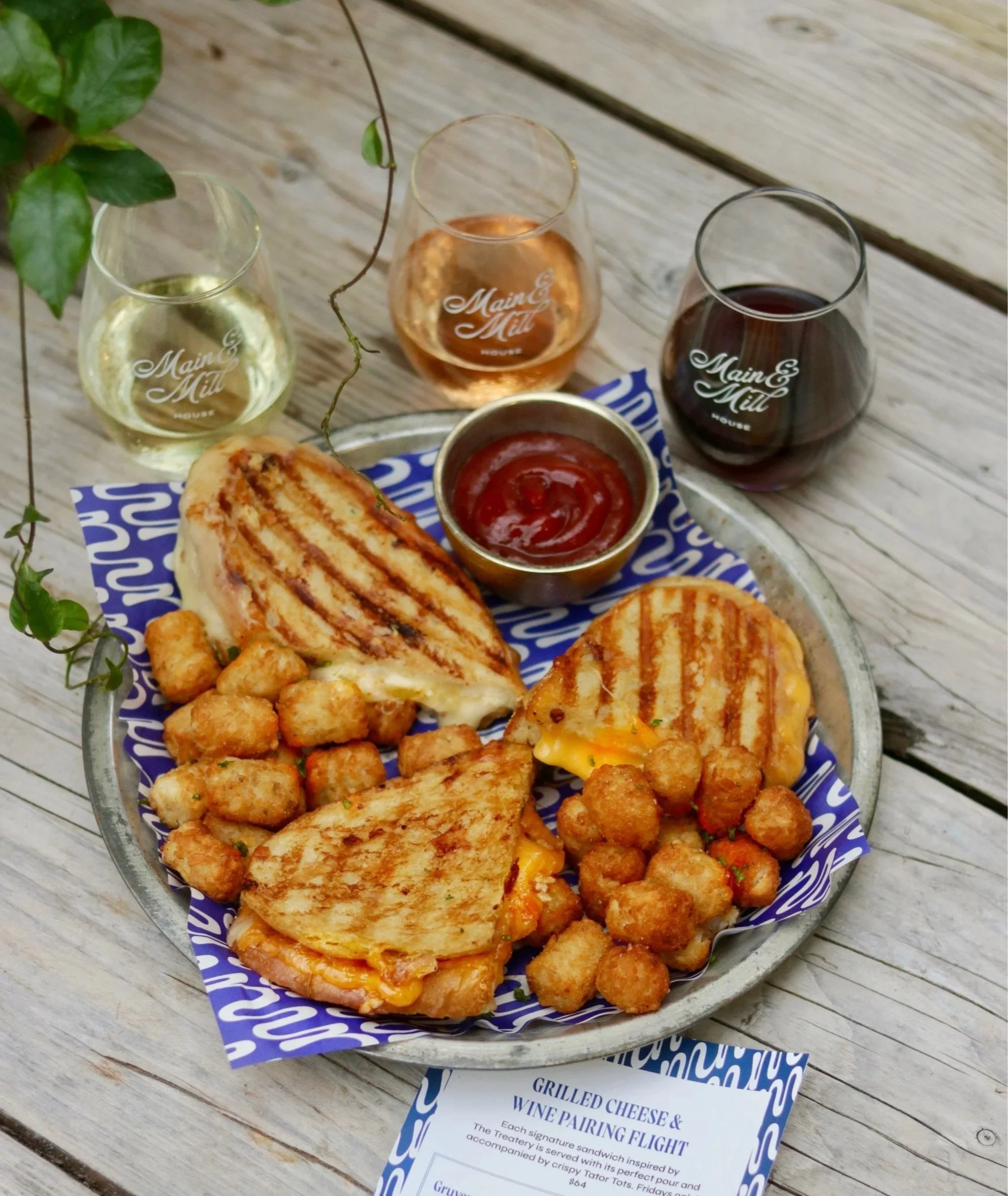 Pair your wine tasting with elevated bites like shrimp cocktail, tater tots, and pigs in a blanket—timeless favorites reimagined to complement your experience.